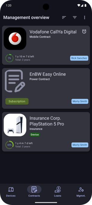 Lege einen neuen oder bearbeite einen existierenden Vertrag. Alle Daten können geändert werden, man muss sich bei Fehleingaben also keine Sorgen machen.