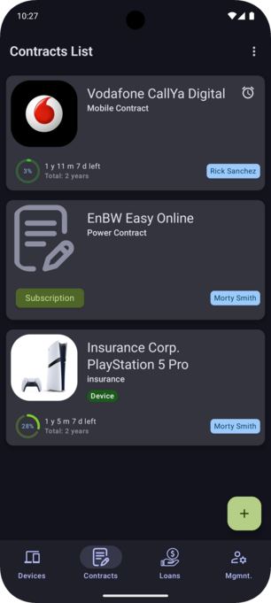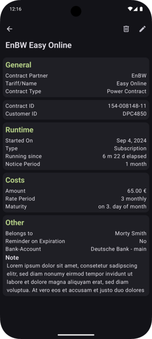 In your details screen, you can see every data you have added about your contract. The amount of data depends on what you have added. Missing data is simply not shown.